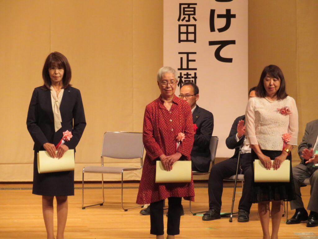 大会の式典では、連盟加盟施設の子どもたちへご支援をいただいている県内3団体(個人含む)の皆様へ会長より感謝状の贈呈をいたしました。